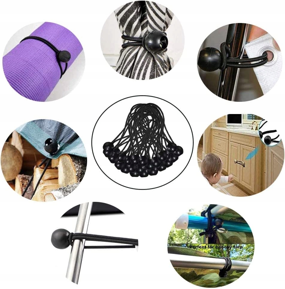 - ✅Wielofunkcyjne zapięcia: Kulkowe sznurki bungee są niezbędnym narzędziem do mocowania plandek, namiotów, baldachimów, kijków, wędek i rolet na zewnątrz. Świetnie nadaje się również do użytku w pomieszczeniach, do porządkowania niechlujnych przewodów, kabli, węży, zasłon lub łączenia świateł lub innych dekoracji, jest to praktyczny przedmiot.