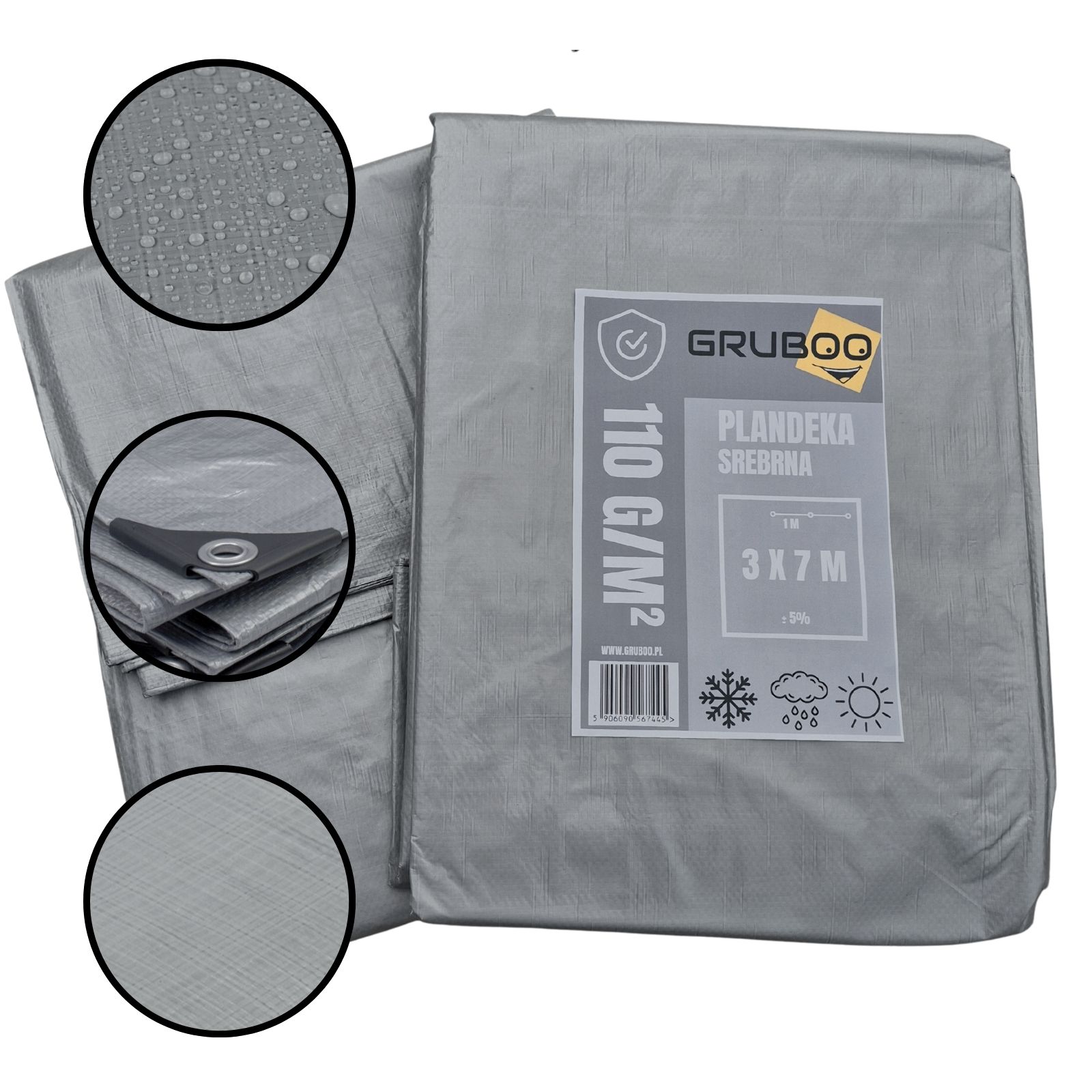 PLANDEKA MOCNA 3X7M SREBRNA OKRYCIOWA MOCNA WZMOCNIONA WODOODPORNA