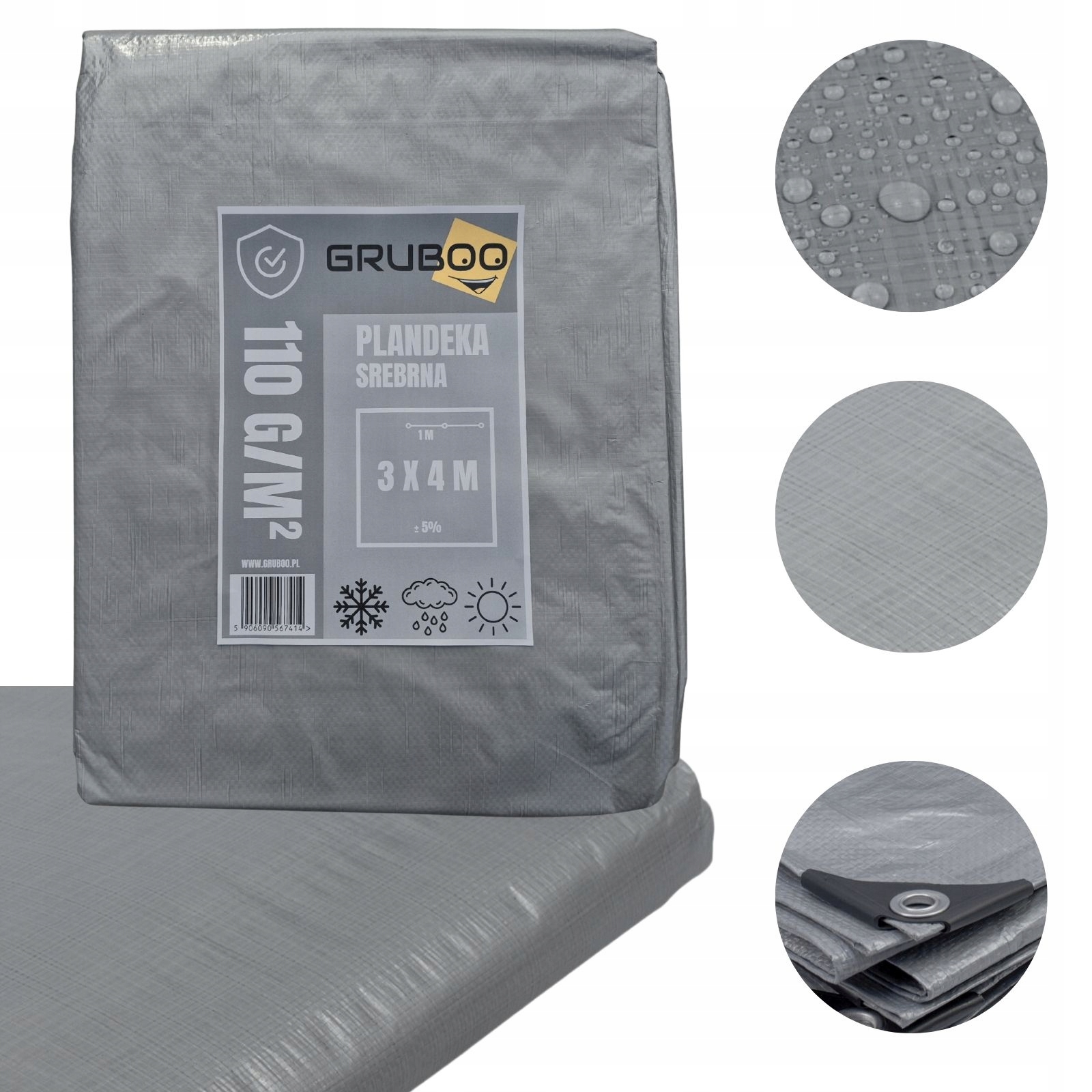 PLANDEKA OCHRONNA 3X4M SREBRNA OKRYCIOWA MOCNA WZMOCNIONA WODOODPORNA
