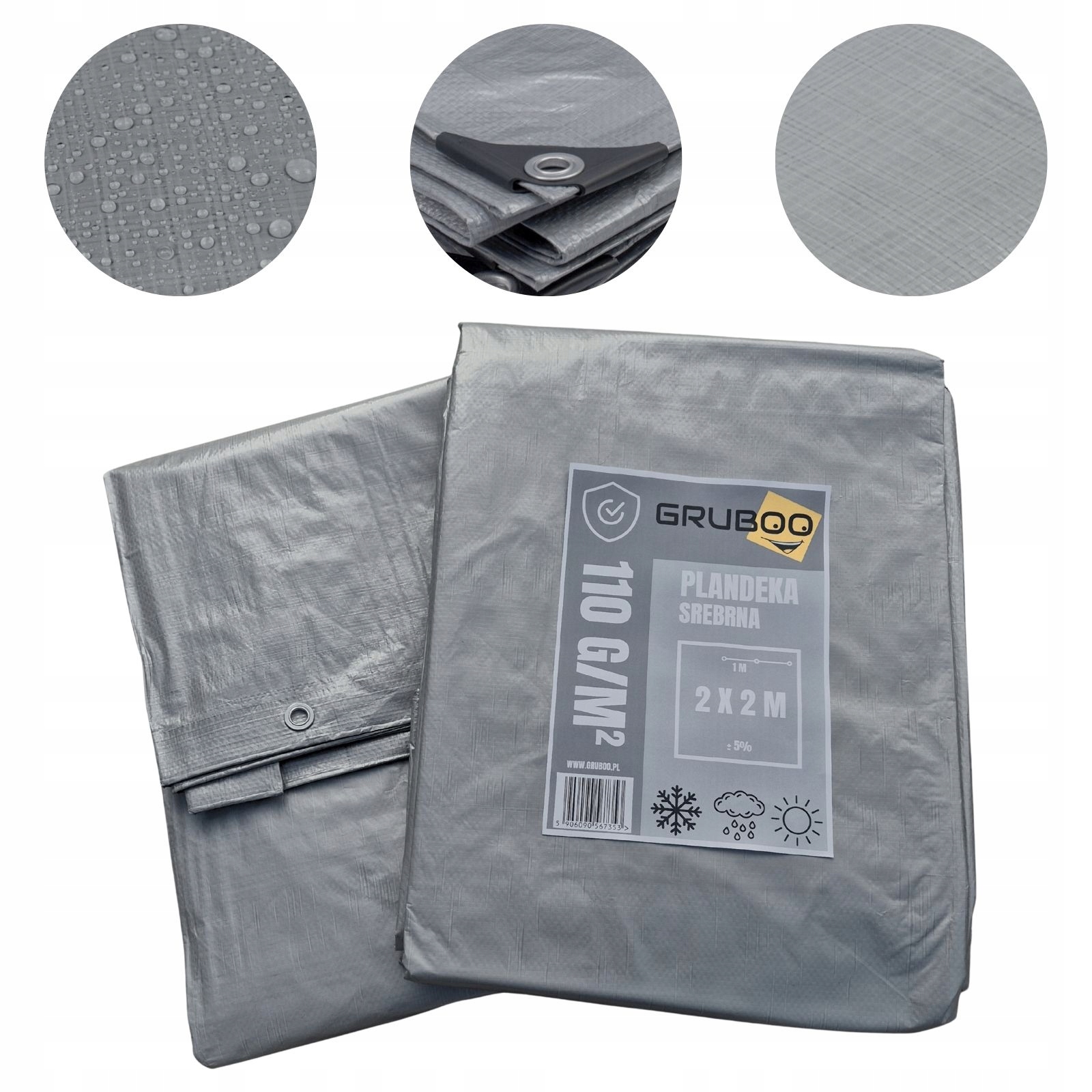PLANDEKA SREBRNA 2X2M OKRYCIOWA OCHRONNA MOCNA WZMOCNIONA WODOODPORNA
