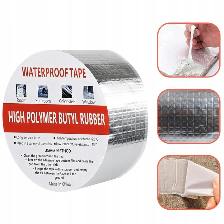 Taśma Srebrna Butylowa Klejąca Wodoodporna Uszczelniająca Naprawcza 10cm 5m