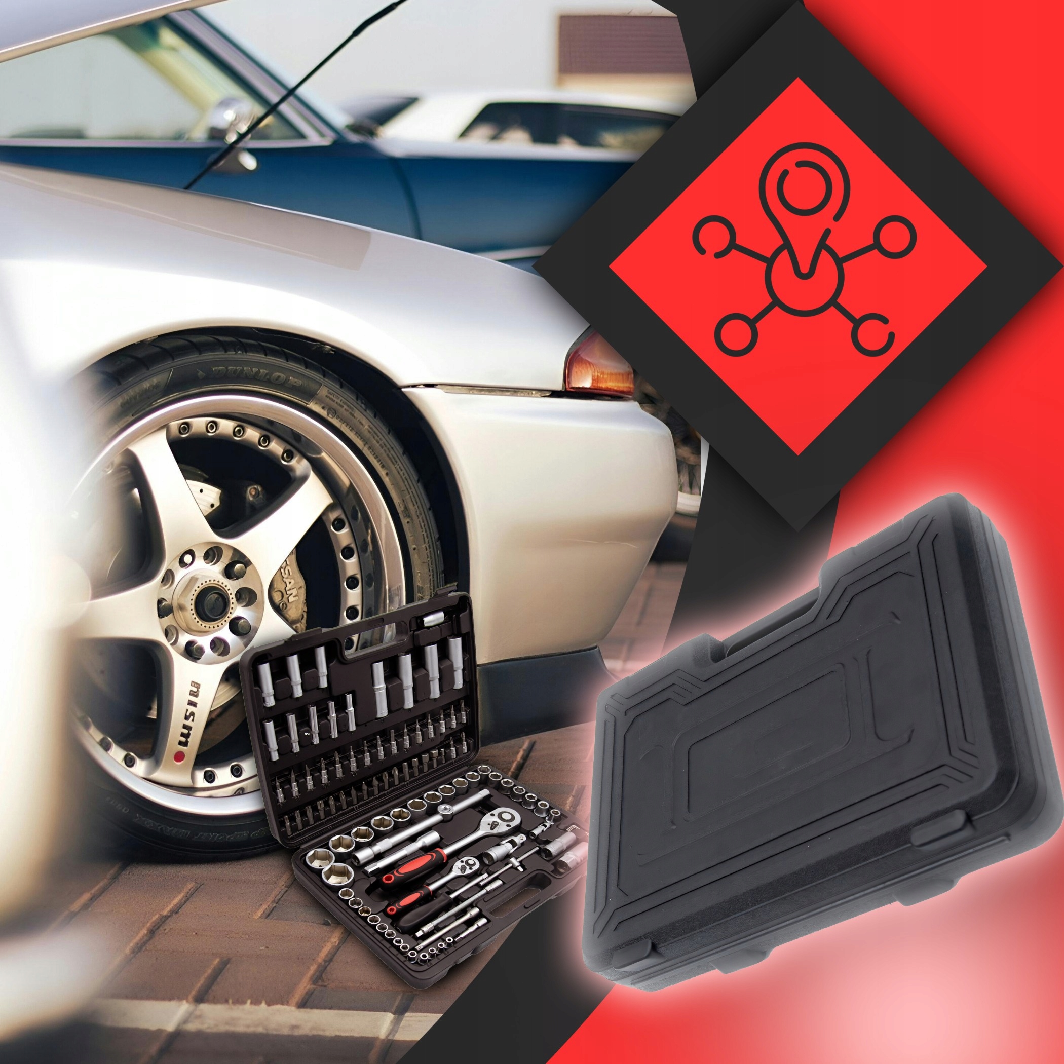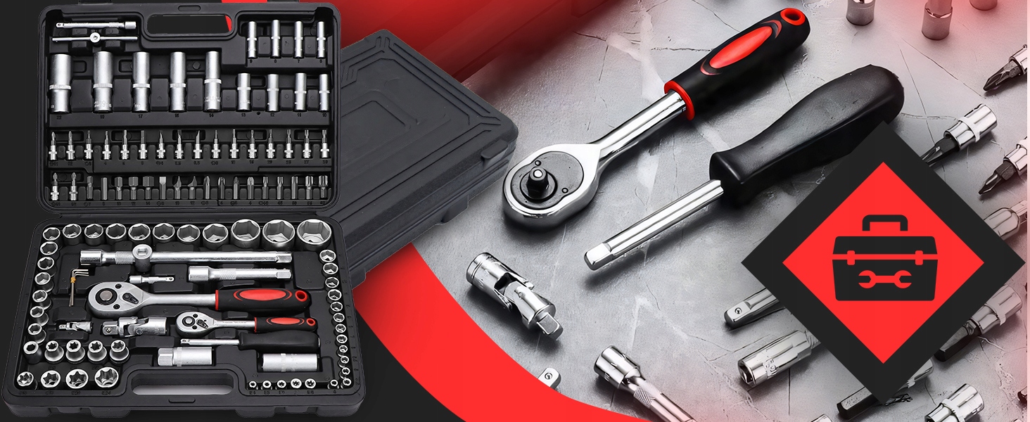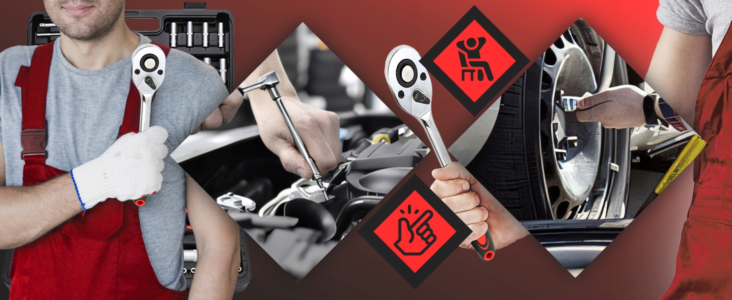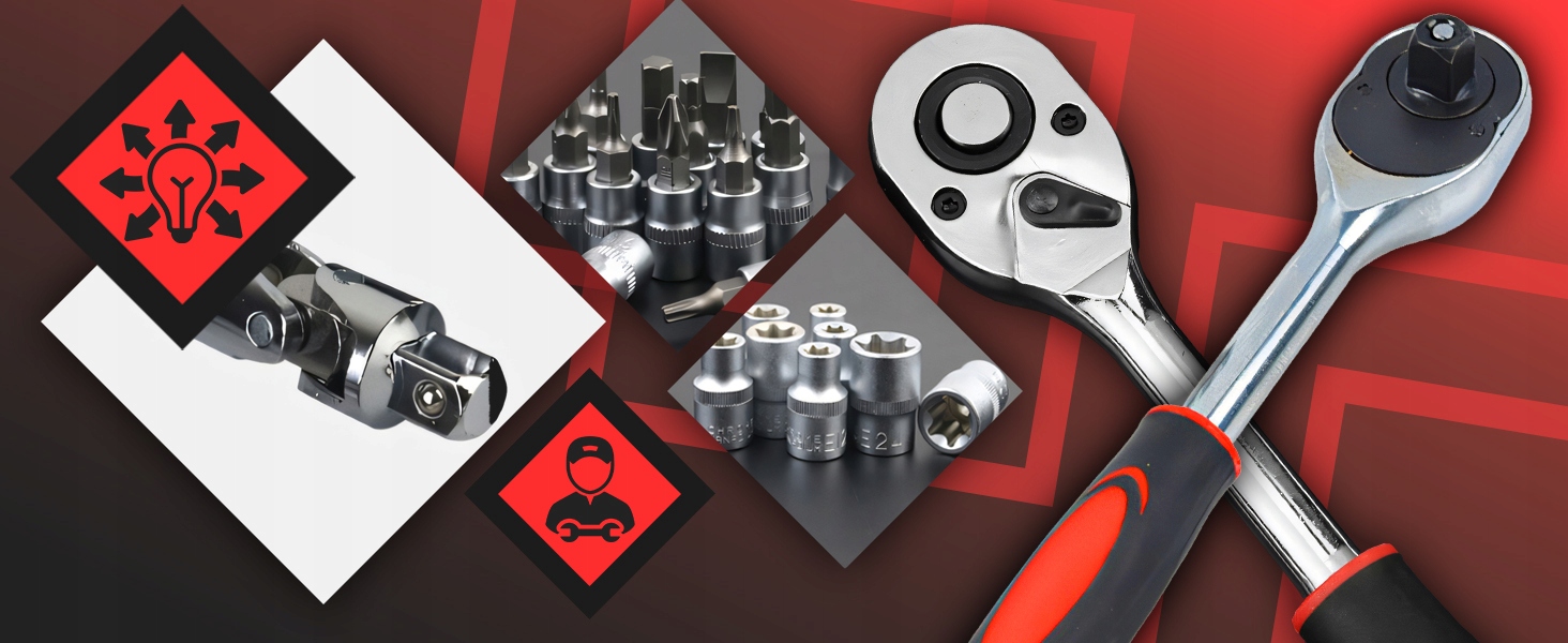 Dzięki szerokiemu zakresowi nasadek, grzechotek, przedłużek oraz innych akcesoriów, zestaw sprawdzi się w wielu zadaniach, w tym przy wymianie kół czy naprawach samochodowych.