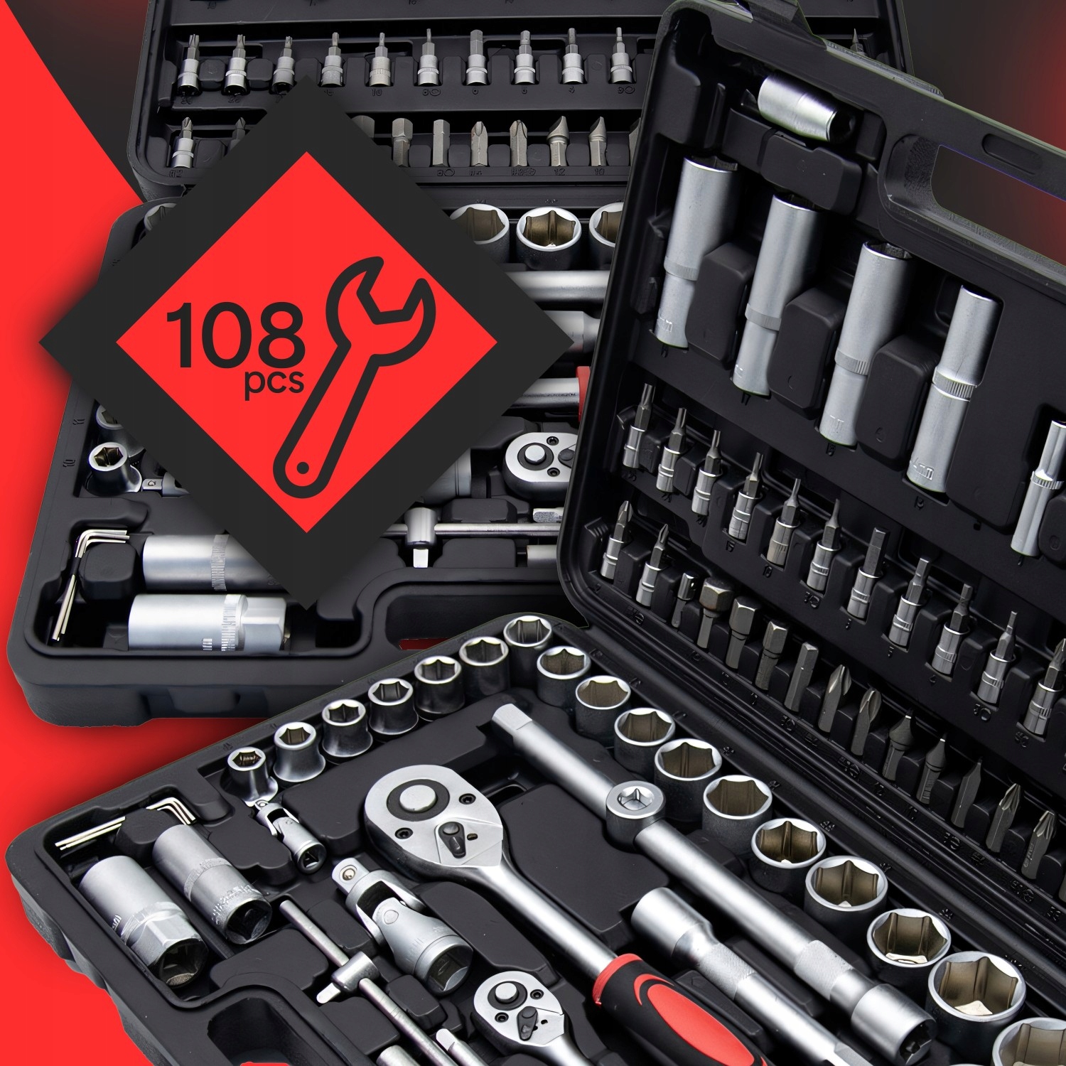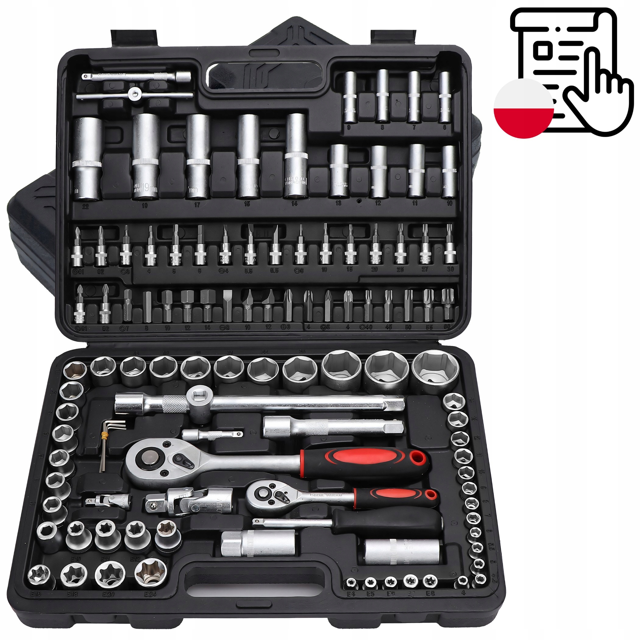 ZESTAW KLUCZY NASADOWYCH 108 EL. NARZĘDZI KLUCZE NASADOWE WALIZKA TORX BITY