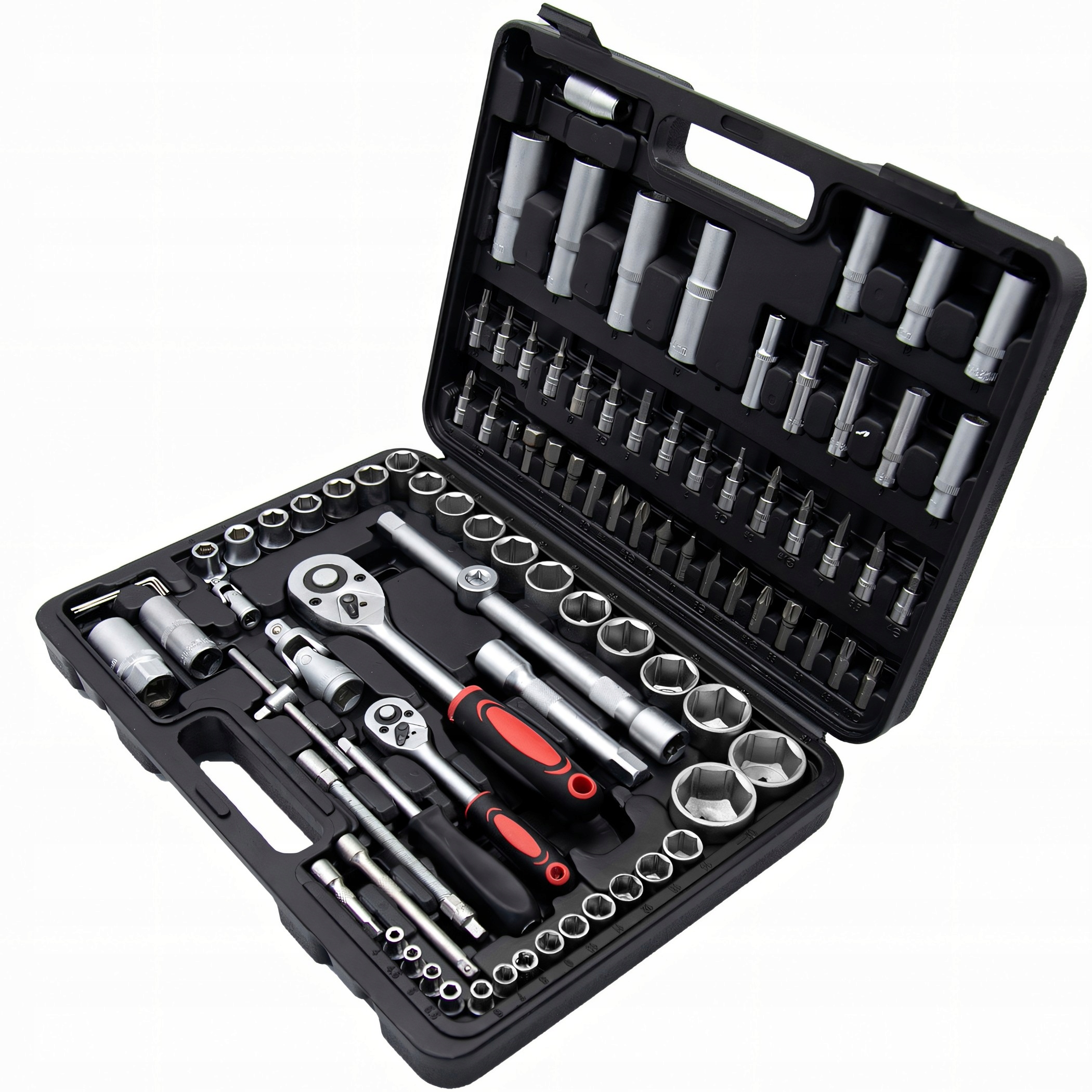 ZESTAW KLUCZY NASADOWYCH 108 EL. NARZĘDZI KLUCZE NASADOWE WALIZKA TORX BITY