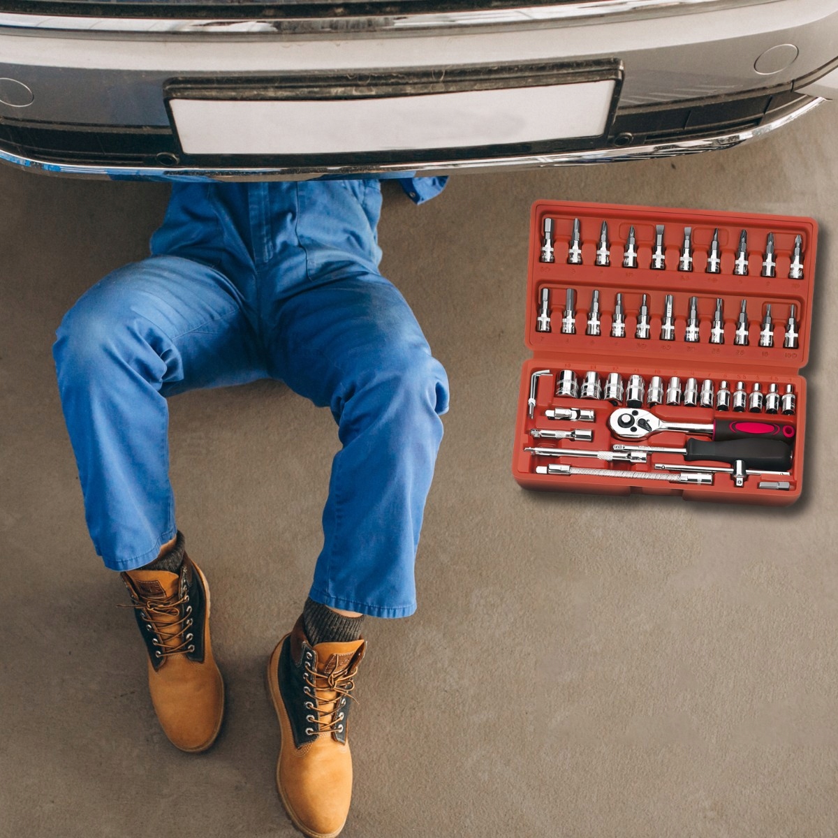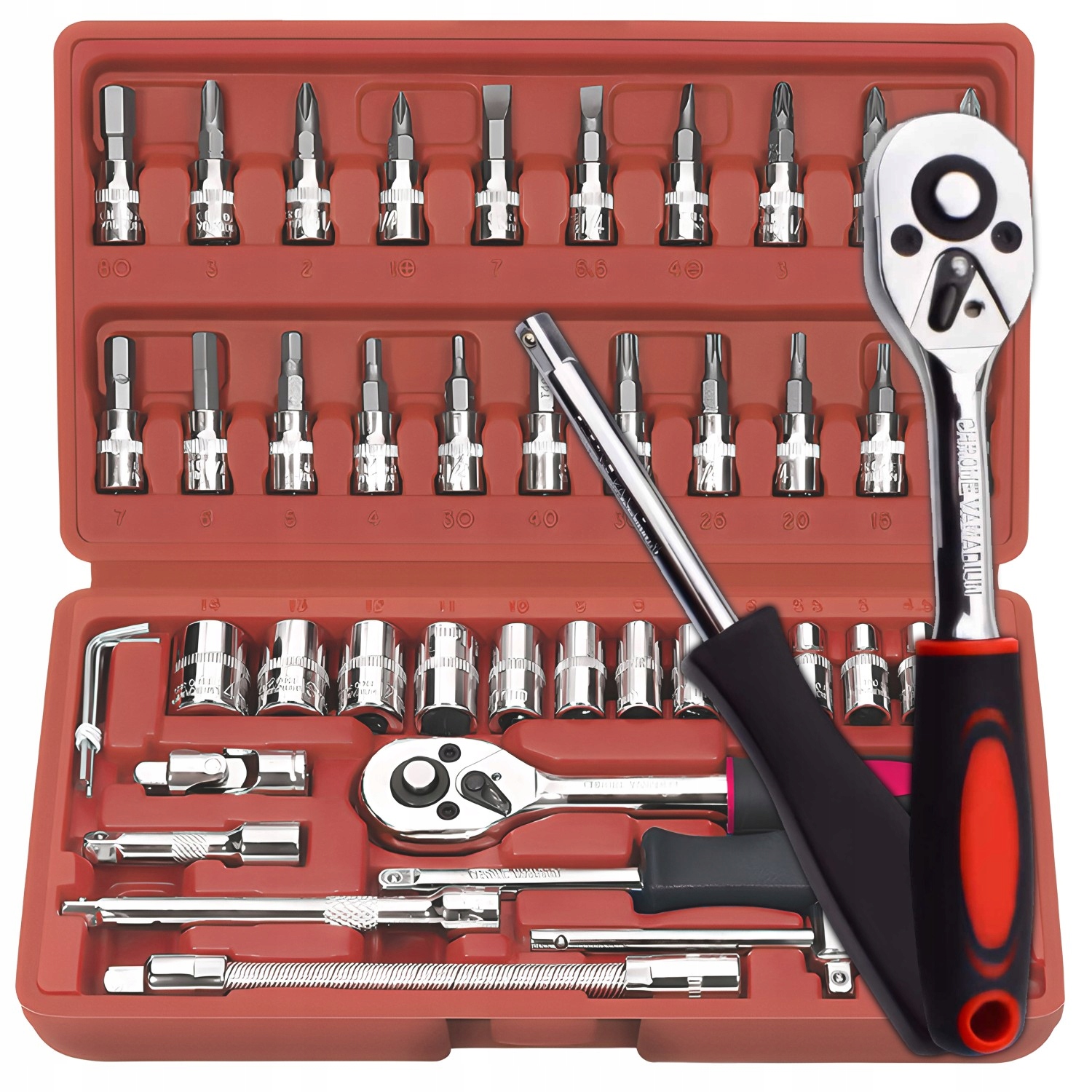 ZESTAW KLUCZY NASADOWYCH KLUCZE NASADOWE 46 ELEMENTÓW STAL