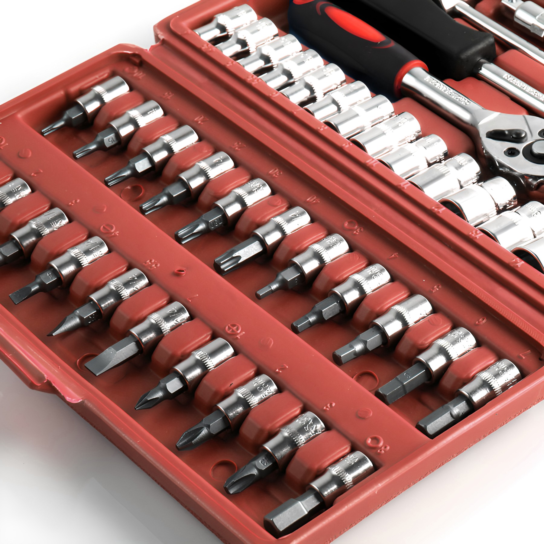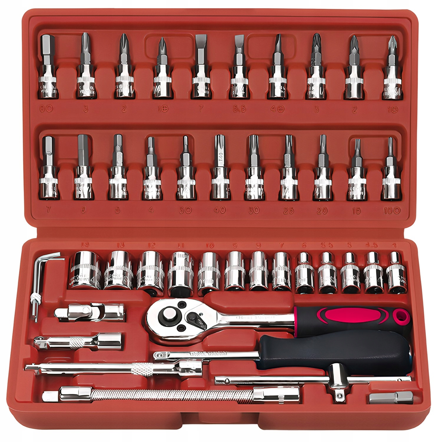 ZESTAW KLUCZY NASADOWYCH KLUCZE NASADOWE 46 ELEMENTÓW STAL