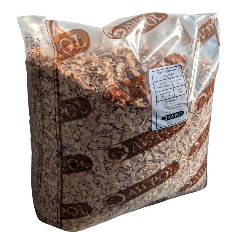 Zrębki bukowe są uniwersalnym drewnem do wędzenia mięsa i ryb.